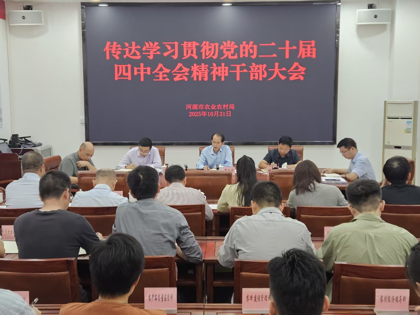 10月31日,市農(nóng)業(yè)農(nóng)村局召開黨組(擴(kuò)大)會(huì)議暨傳達(dá)學(xué)習(xí)貫徹黨的二十屆四中全會(huì)精神干部大會(huì),傳達(dá)學(xué)習(xí)貫徹習(xí)近平總書記在黨的二十屆四中全會(huì)上的重要講話和全會(huì)精神,以及省、市傳達(dá)學(xué)習(xí)貫徹黨的二十屆四中全會(huì)精神干部大會(huì)精神,研究部署貫徹落實(shí)意見。局黨組書記、局長(zhǎng)鄧春華同志主持會(huì)議并講話。